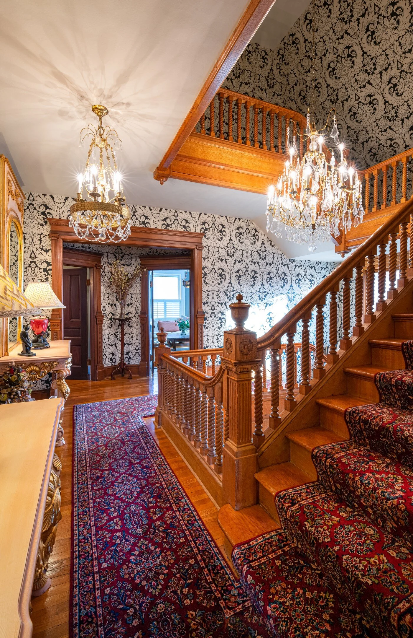 CRAFTSMANSHIP: This home is the epitome of authentic craftsmanship and artistry. With eight working fireplaces (hand carved Louis XIV marble and Louis XIV red marble), oak, walnut and cherry flooring, ornate moldings, eleven chandeliers, twenty-two carat double ducat yellow gold leaf, white gold leaf and rose gold leaf, an awe-inspiring three story quarter-sawn oak staircase, nineteenth century leaded glass and seven elegant stained glass windows, it’s hard to choose what to look at first. Four stories of finished, beautifully appointed space creates nearly 9,000 square feet of lavish living, including a 2,000 square foot master suite complete with a jacuzzi, steam room and skylight.